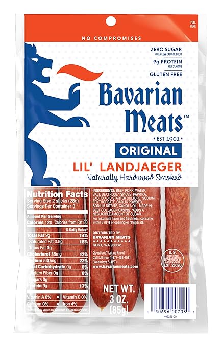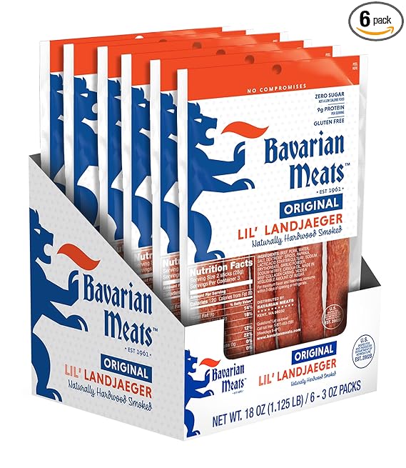 - Includes (6) 3oz packs of delicious German style beef and pork lil’ landjaeger sausages